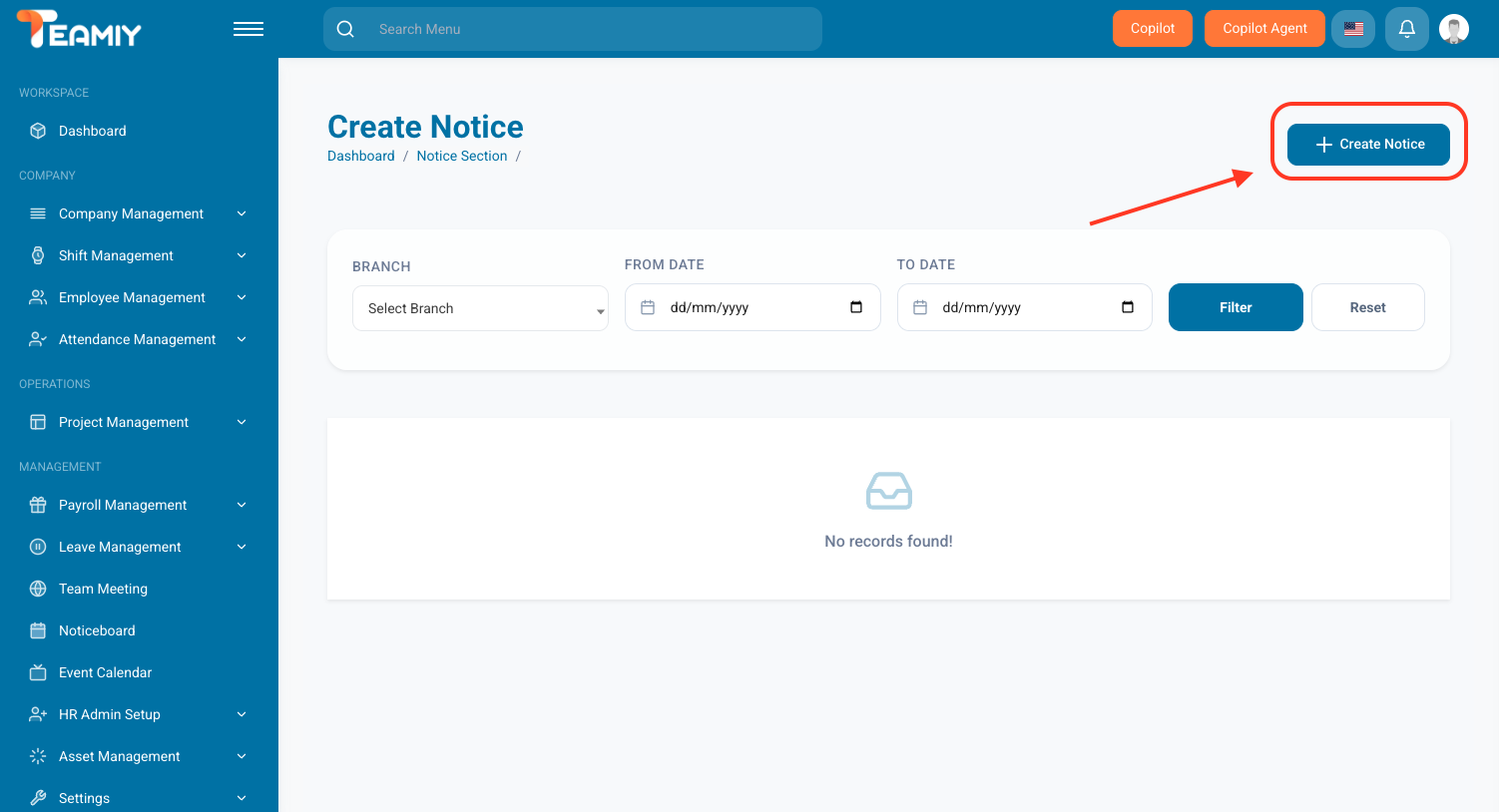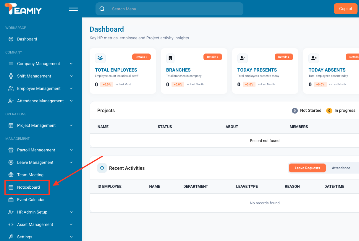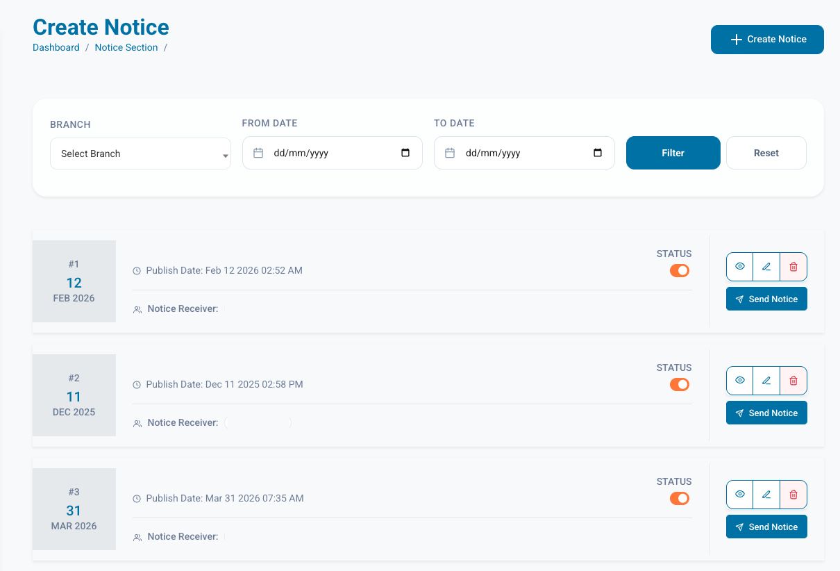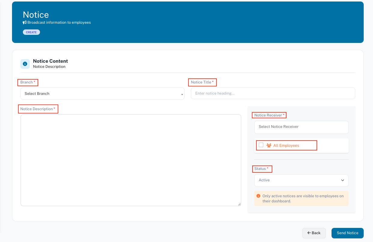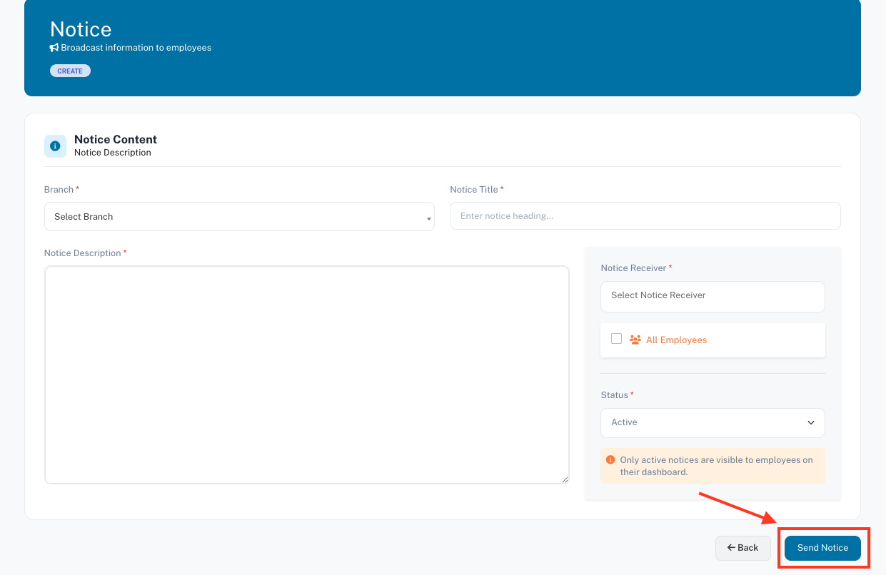 Once saved, the notice will appear in the Notice Board, and selected employees will be able to view it from their dashboard.