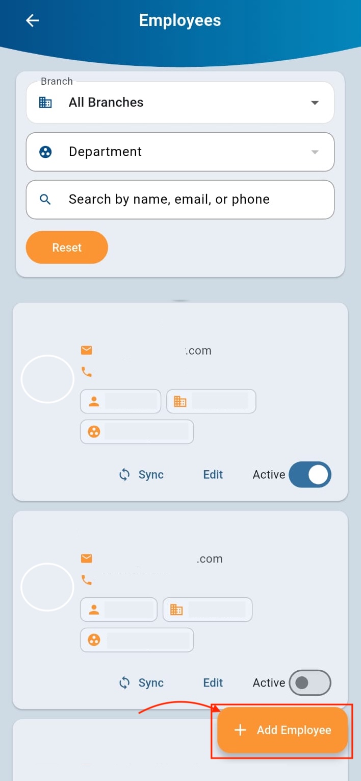 After saving, the employee will appear in the Employee List, and you can edit or update the details anytime.